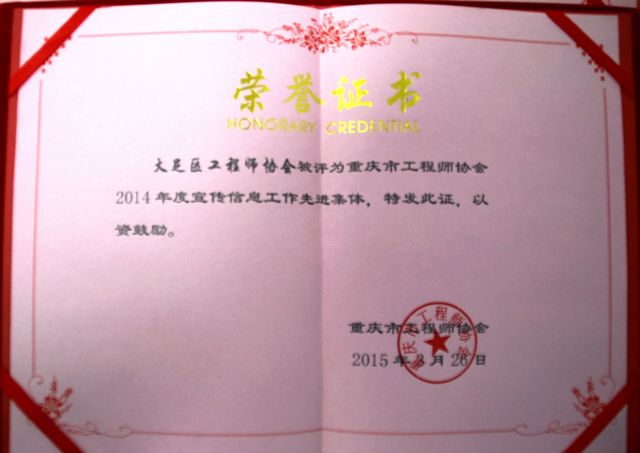 协会被评为2014年度市工协宣传信息工作先进集体”称号